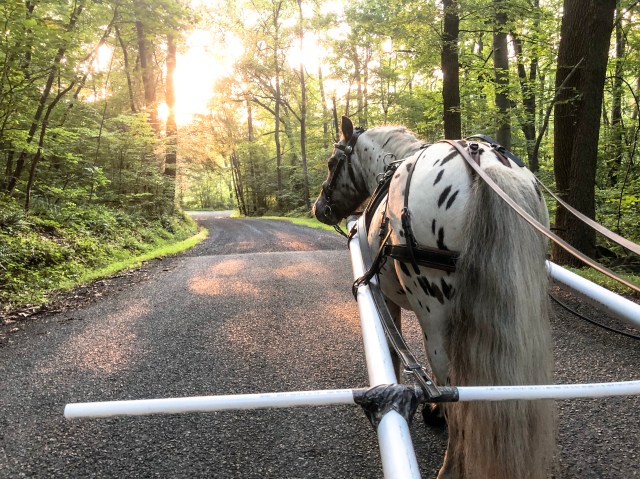 On day three, I took a leap of faith and journeyed out with Jasper through the neighborhood roads for a sunset walk. I cannot stress enough how much of a rockstar this pony is. The roads were very quiet but a couple of cars did drive past us. Each time I asked Jasper to ‘woah’ and he stood there patiently as they drove by. He only shied away from something on the road once or twice but kept walking on. He NEVER called out to anyone at home. You should have seen his little ears perking up at all of the new things to look at!